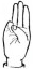 На ћирилици написано МИНА МИЉУШ састоји се из 9 слова [?]. Исписано ћириличном једноручном азбуком за глувонеме: